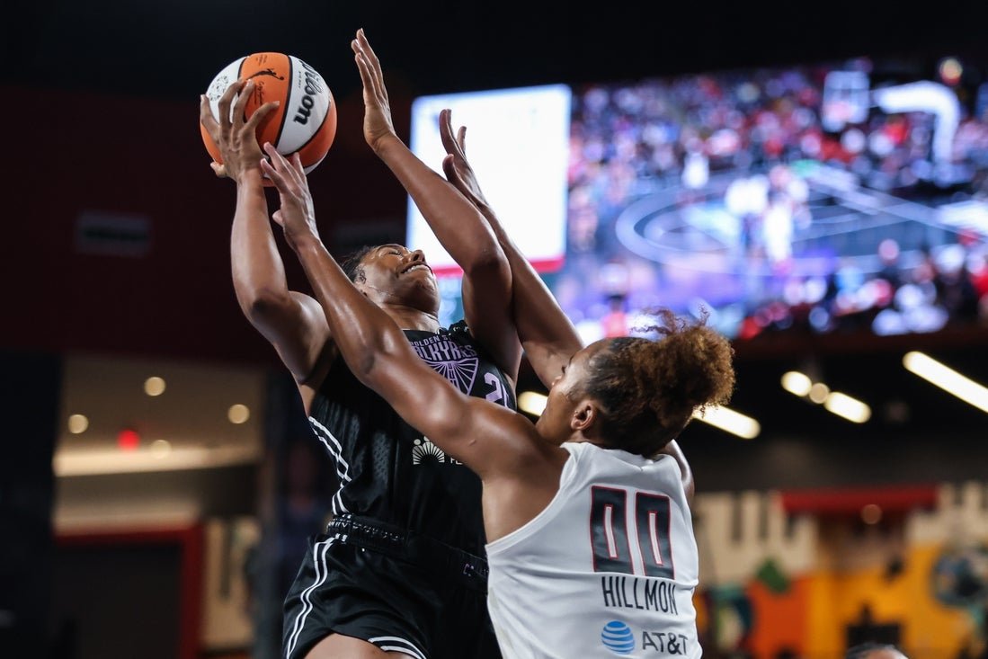 29 يوليو 2025 ؛ كوليدج بارك ، جورجيا ، الولايات المتحدة الأمريكية ؛ غولدن ستايت فورست فورست مونيك بيلينغز ، 25 عامًا ، يطلق النار على الكرة ضد أتلانتا دريم المهاجم ناز هيلمون (0) خلال الربع الأول في ميدان بوابة في كوليدج بارك. ميزة مطلوبة: صور الأردن Godfree-agn-agn Cecilia Zandalasini متصلة على قفزة متوسطة الحجم … اقرأ المزيد