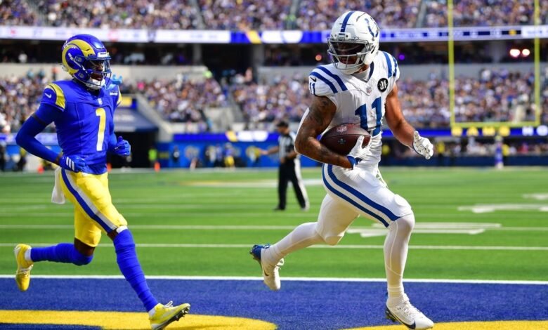 28 سبتمبر 2025 ؛ إنجلوود ، كاليفورنيا ، الولايات المتحدة الأمريكية ؛ يسجل المتلقي الواسع إنديانابوليس كولتسا مايكل بيتمان (11) هدفًا للعودة إلى قبل لوس أنجلوس رامس إيمانويل فوربس جونيور (1) خلال الشوط الثاني في ملعب صوفي. القرض الإلزامي: صور غاري أ. فاسكويز-Imagn أضاف إنديانابوليس كولتس جهاز استقبال واسع مايكل بيتمان إلى تقرير الإصابة في أسبوع من الركبة يوم الخميس مع مشكلة في الركبة.